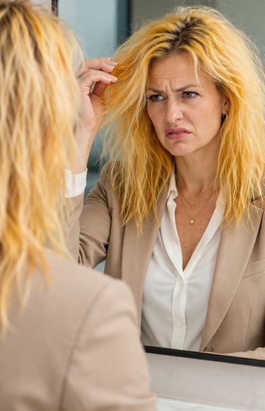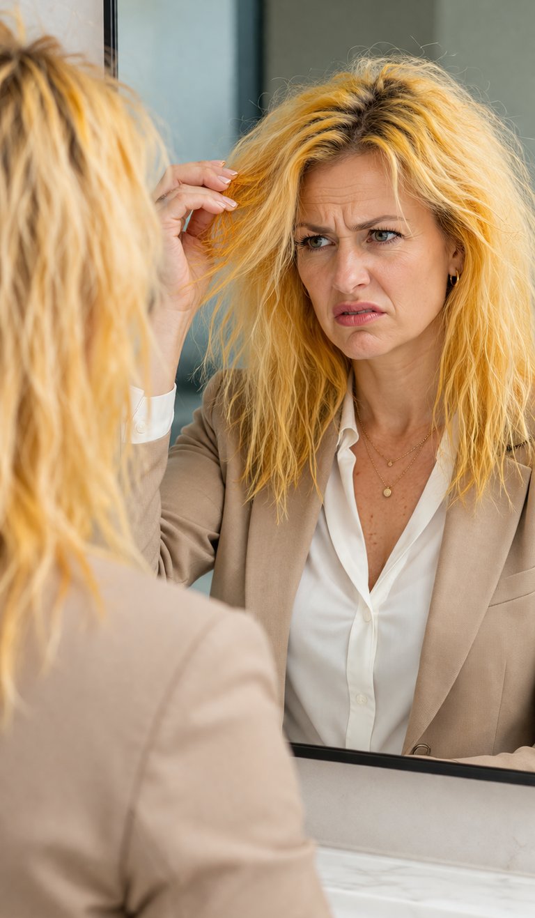 ❌ Riflessi gialli o arancioni , per via di parrucchieri che applicano il decolorante "a occhio" ignorando la chimica della tua base naturale